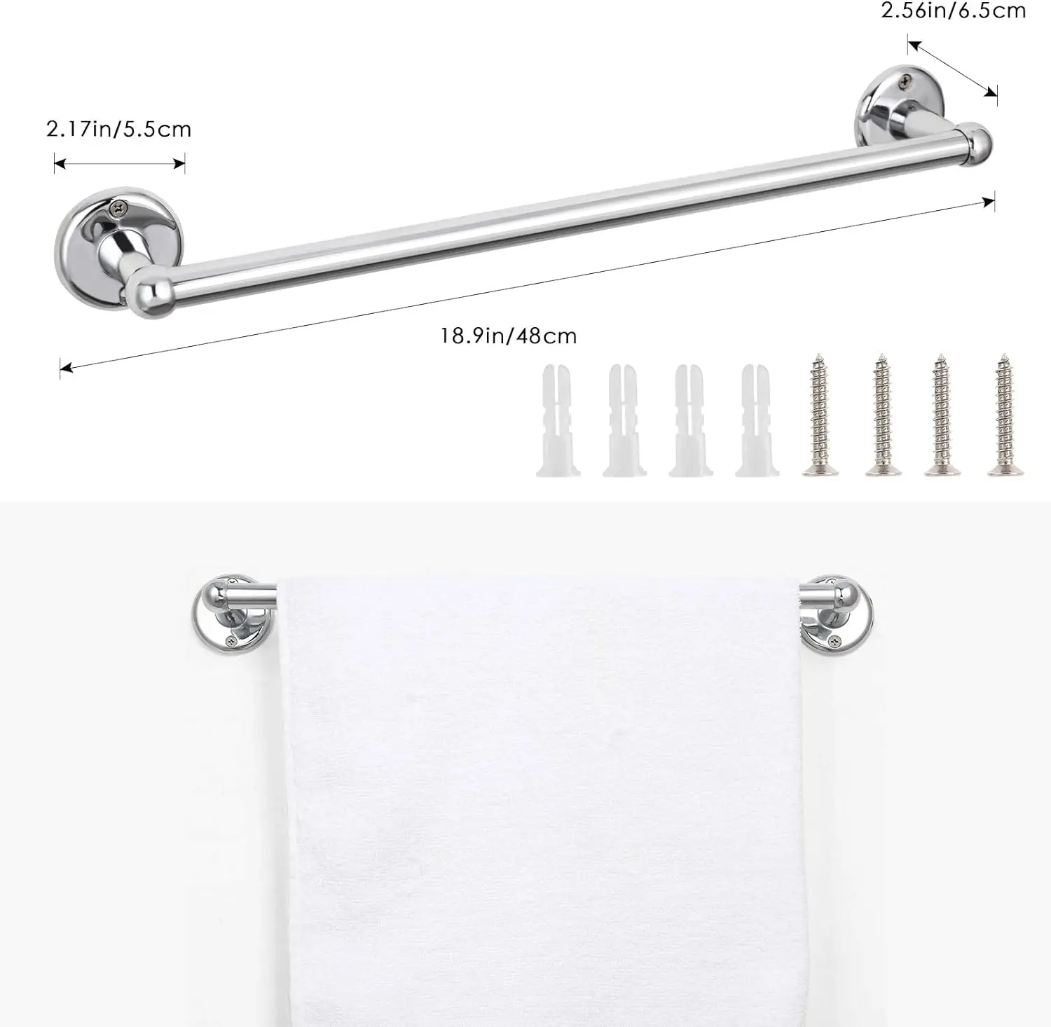 The bathroom towel rack set is made of sturdy and durable high-grade metal. The smooth electroplated silver surface can prevent rust, corrosion, and loss of luster, providing years of service.