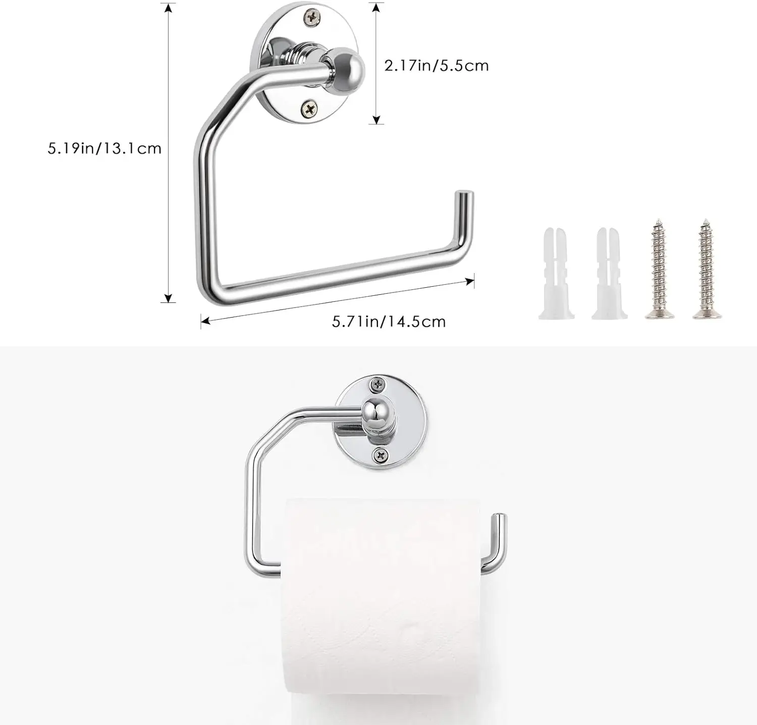Bathroom Hardware Set: This 4-piece bathroom set includes a bathroom towel bar (45.94 cm), towel ring (diameter 13.98 cm), toilet paper holder (crossbar arm 11.72 cm), and multi-purpose double bathrobe hook.